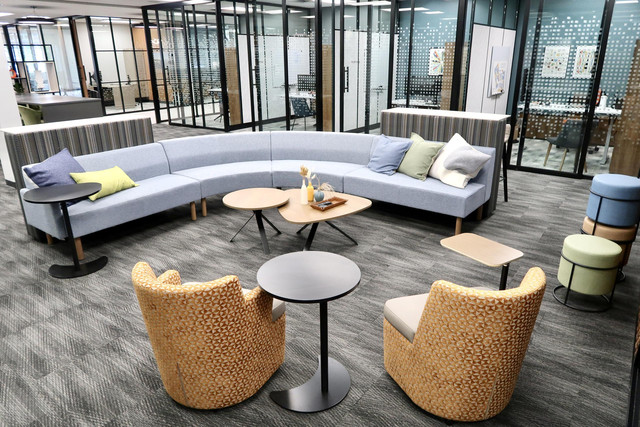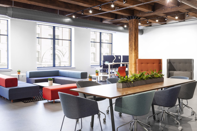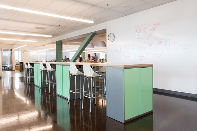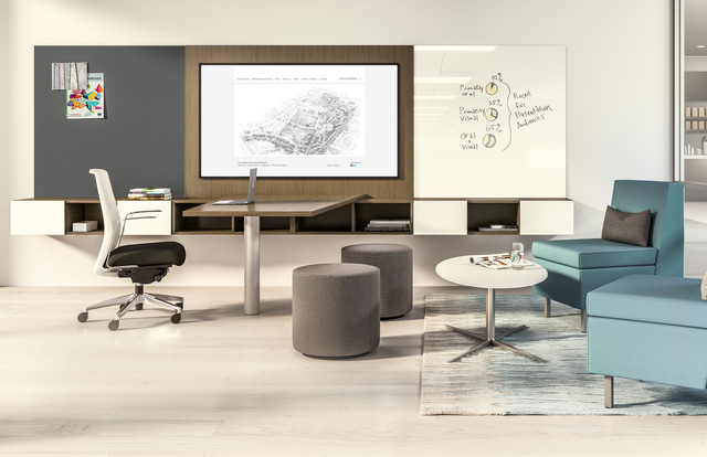 Collaboration areas can be transitional spaces used for informal gatherings or a quick touch base away from the workstations. These types of areas can foster a community mindset within your organization.