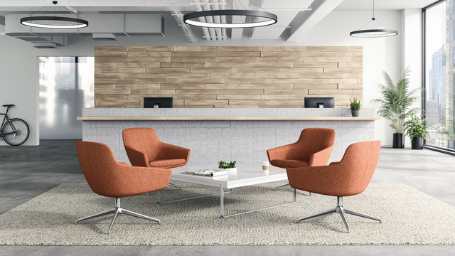 Welcoming your guests into a unique reception area is an easy way to showcase your brand and style. Choosing the right mix of materials throughout your furniture can do just that!